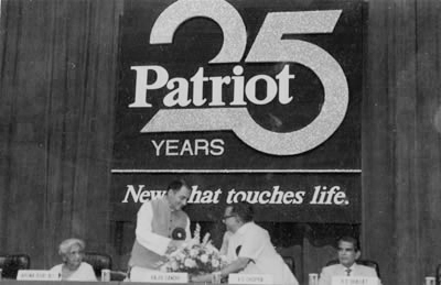 Mr. R.D. Bhagat was with the then Prime Minister of India, Shri Rajiv Gandhi on the occasion of “25 years of Patriot Newspaper”.
